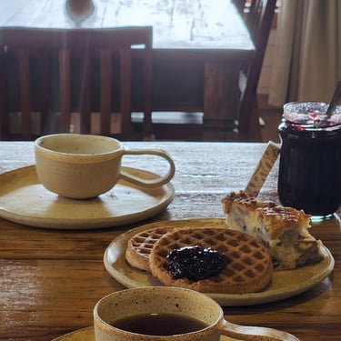 São 2 suítes e mais 1 quarto no sotão, completos com cama queen e um banheiro grande, com ducha quente a gás. Uma das suítes possui vista direta para o vale, e a outra também possui uma varanda privativa.