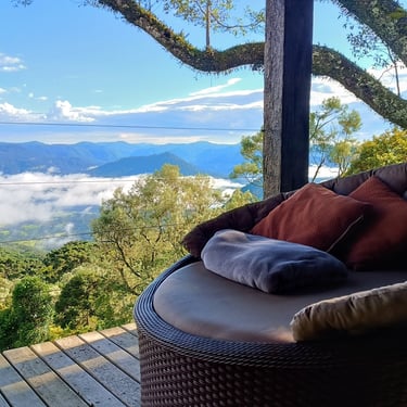 Você vai se apaixonar por nossa varanda pela vista do vale, com o mar de nuvens, o nascer e o por do sol.