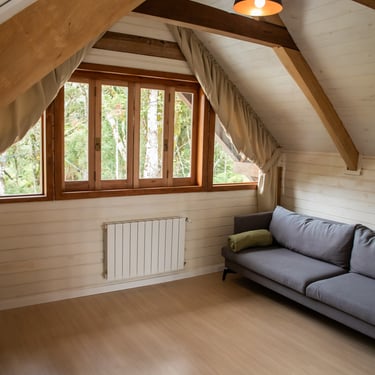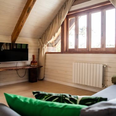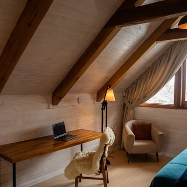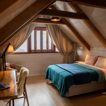 Um quarto especial no sotão, com uma janela com vista incrível para o vale.